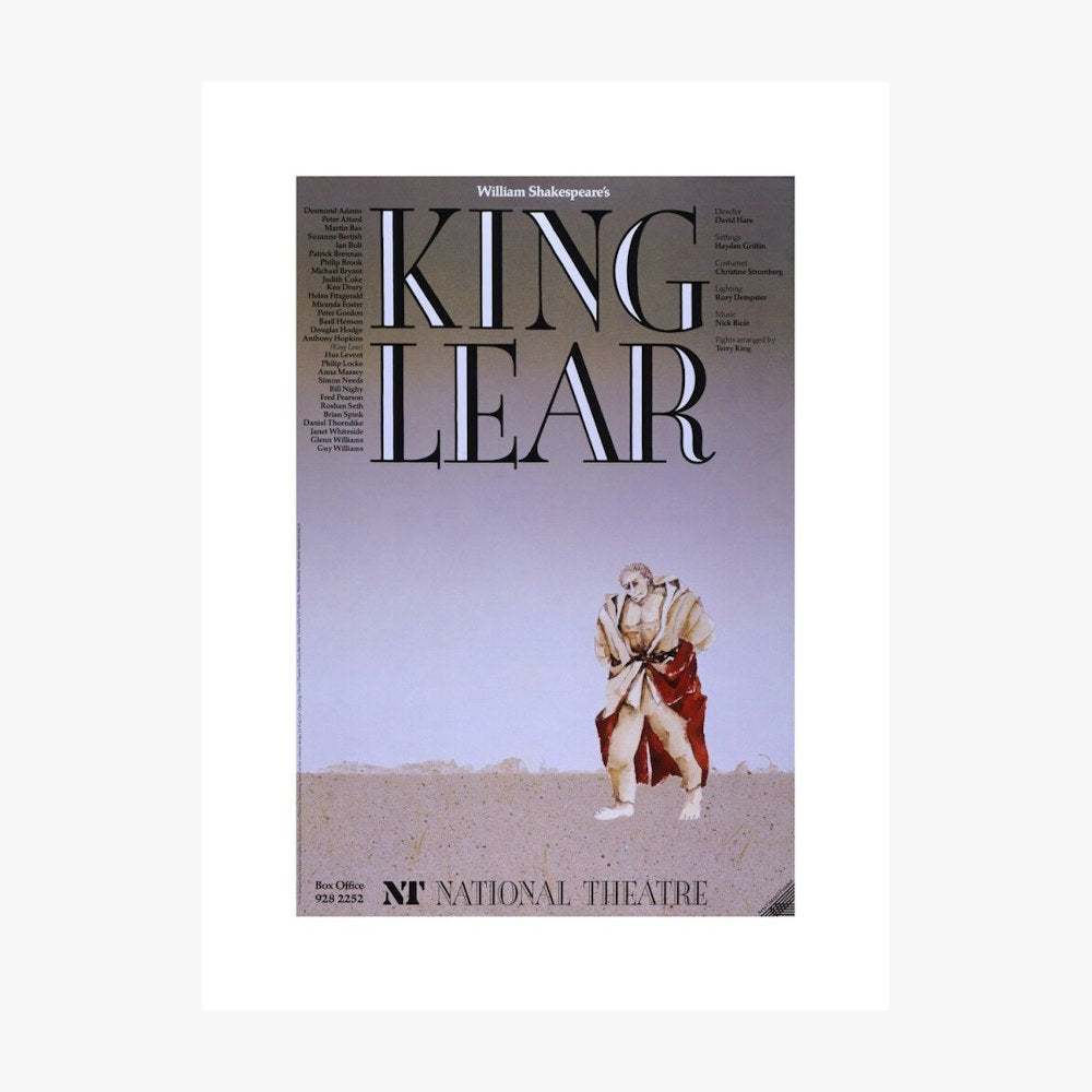 This is a print of the National Theatre 1986 production poster for King Lear. The bookshop has collaborated with the Archive team to bring you an exclusive collection of custom prints taken from original National Theatre artworks.