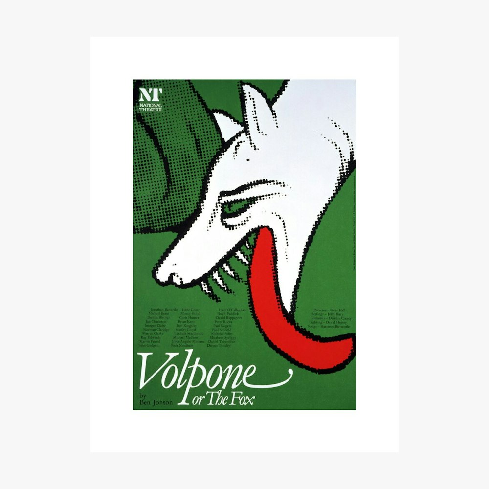 This is a print of the National Theatre 1977 production poster for Volpone. The bookshop has collaborated with the Archive team to bring you an exclusive collection of custom prints taken from original National Theatre artworks.