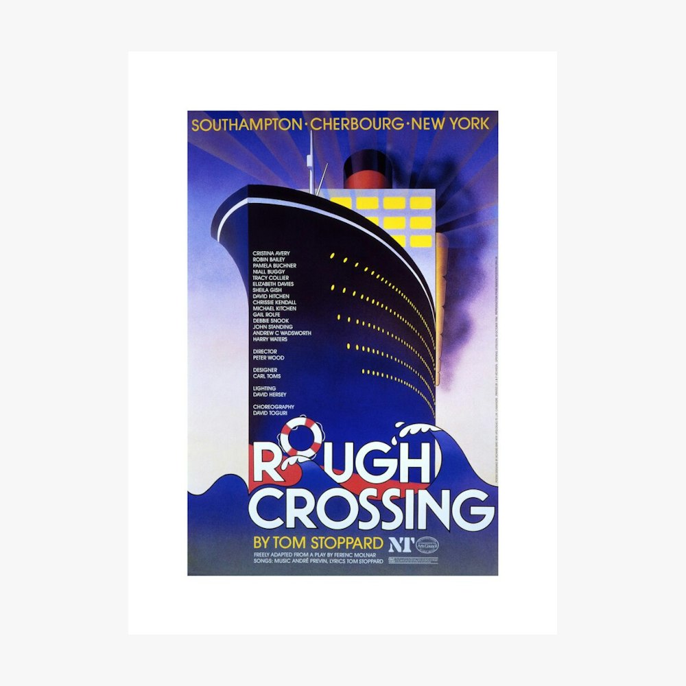 This is a print of the National Theatre 1984 production poster for Rough Crossing. The bookshop has collaborated with the Archive team to bring you an exclusive collection of custom prints taken from original National Theatre artworks.