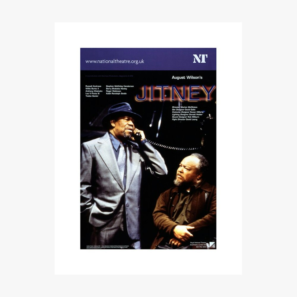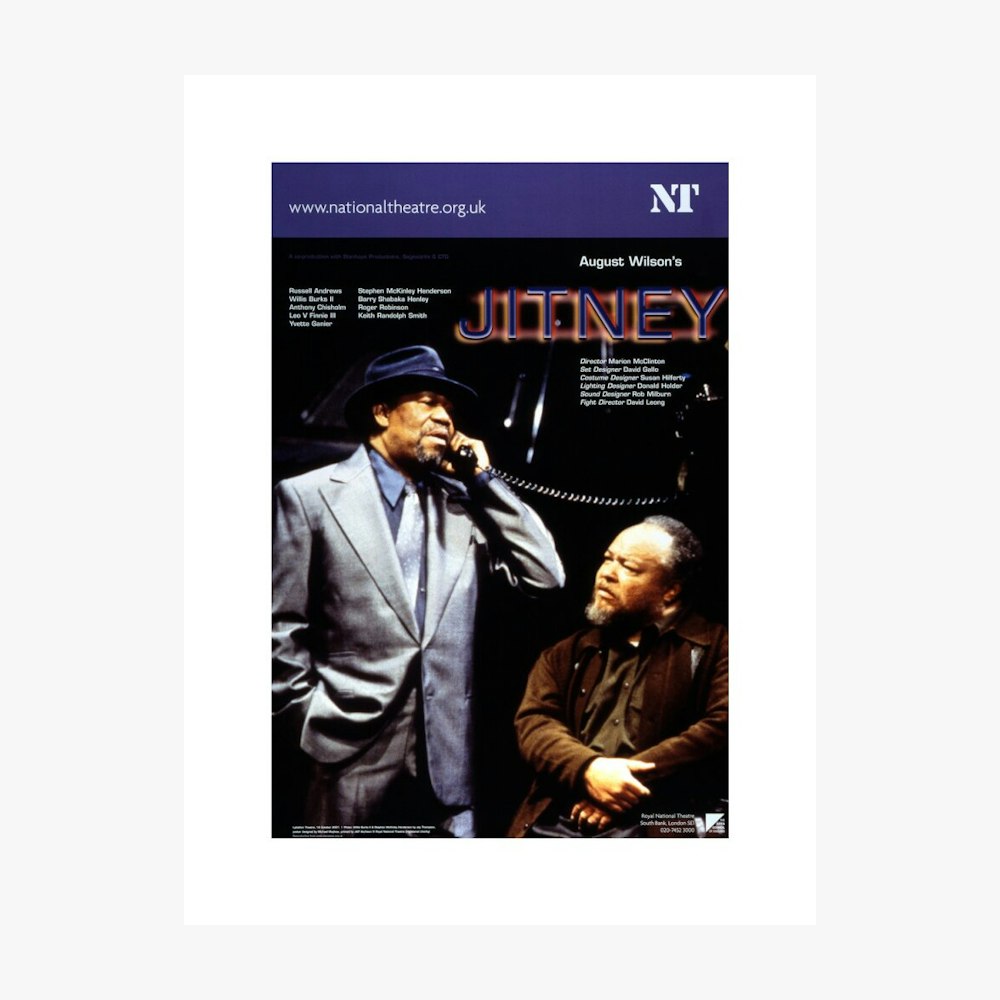This is a print of the National Theatre 2001 production poster for Jitney. The bookshop has collaborated with the Archive team to bring you an exclusive collection of custom prints taken from original National Theatre artworks.