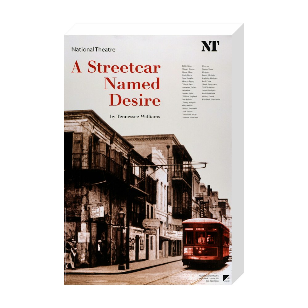 This is a print of the National Theatre 2002 production poster for A Streetcar Named Desire. The bookshop has collaborated with the Archive team to bring you an exclusive collection of custom prints taken from original National Theatre artworks.