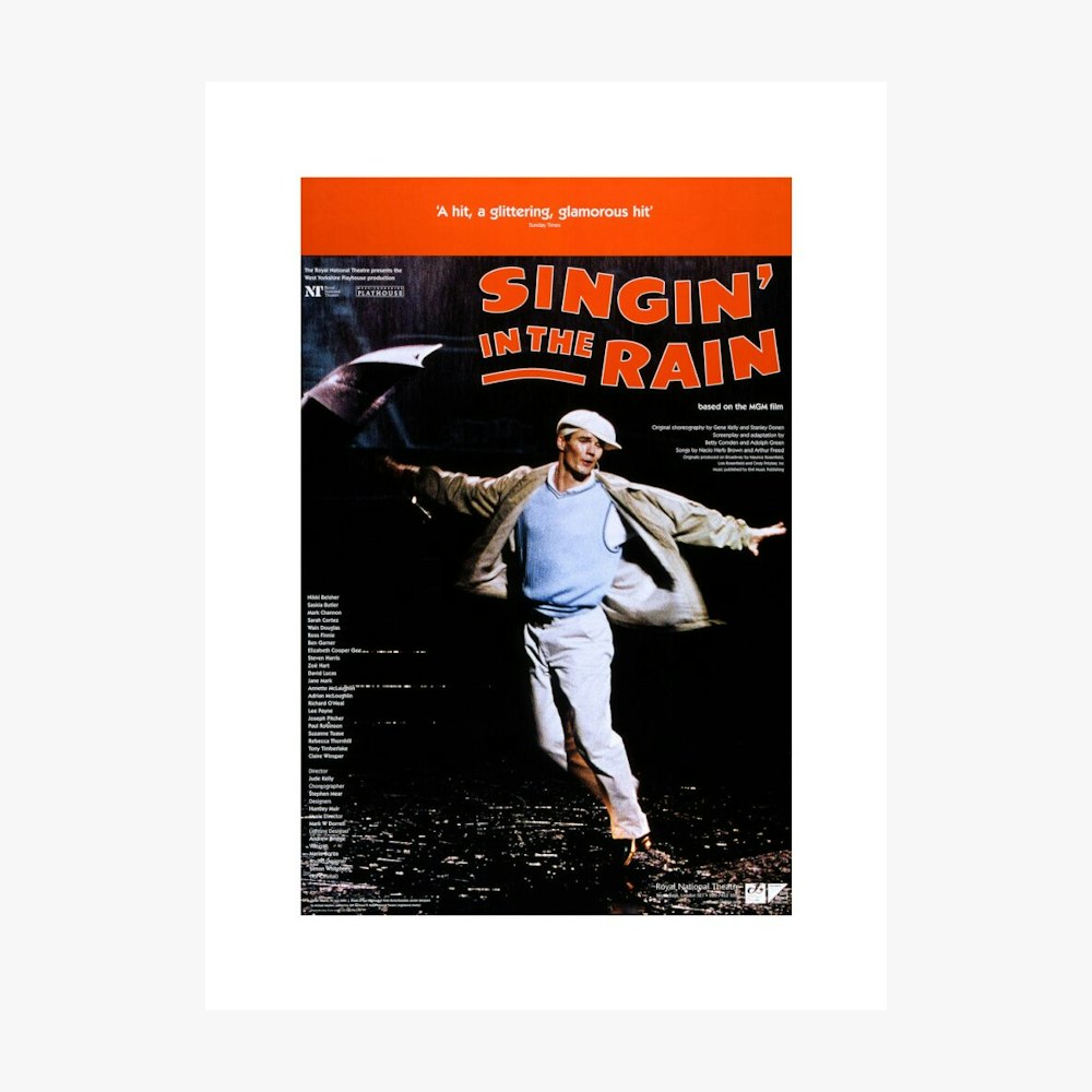 This is a print of the National Theatre 2000 production poster for Singin' in the Rain. The bookshop has collaborated with the Archive team to bring you an exclusive collection of custom prints taken from original National Theatre artworks.